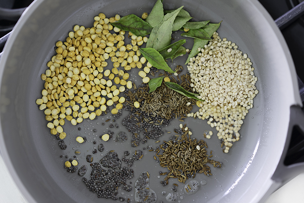 - 1 tbsp Chana Dal + 1 tbsp Urad Dal (optional/sub extra nuts if you don't have dal)