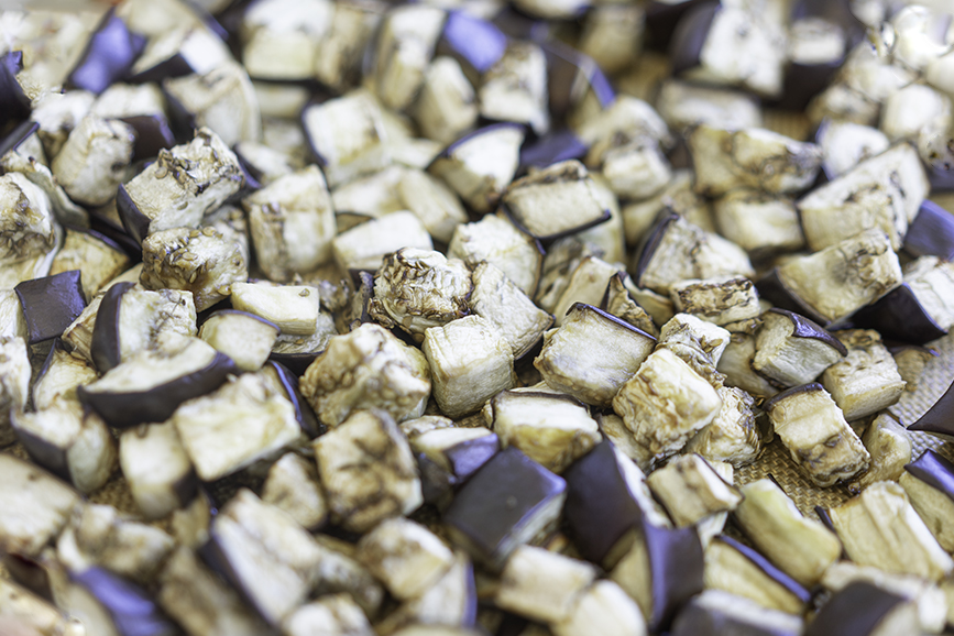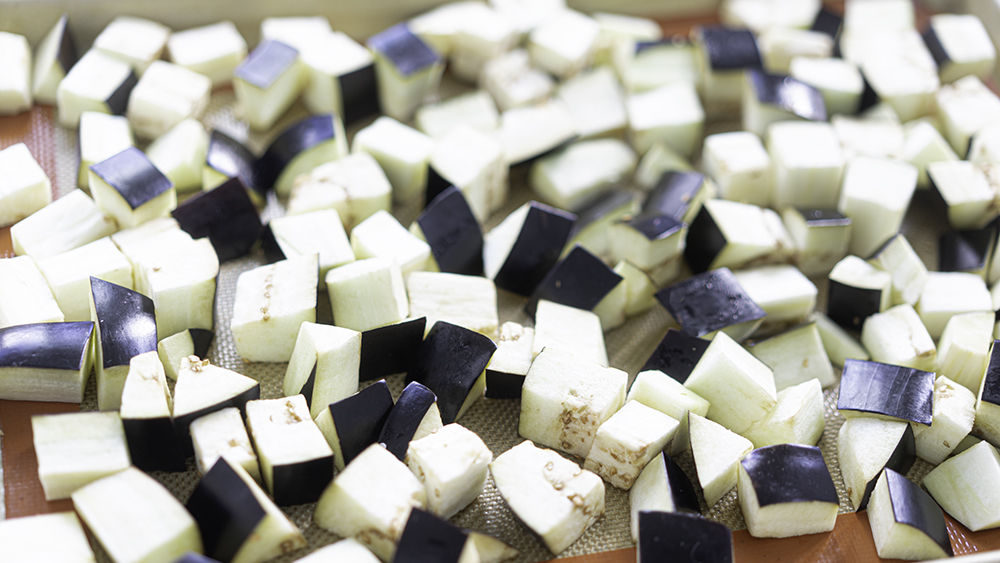 - 2 eggplant (washed, stems removed, cut into 1 inch cubes)