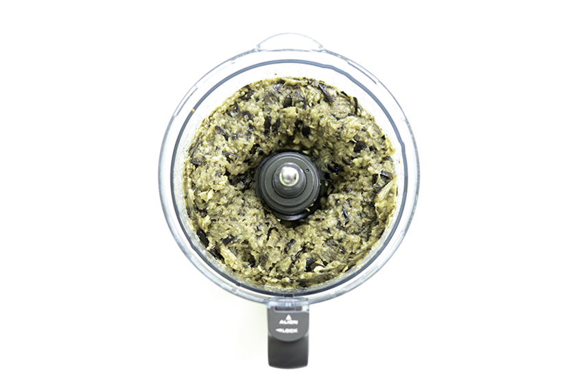 - Step 6 When eggplant is done roasting, allow to cool to room temperature + transfer to food processor or blender. Process until the eggplant turns into a puree. Don’t overdo it, you want some texture.
